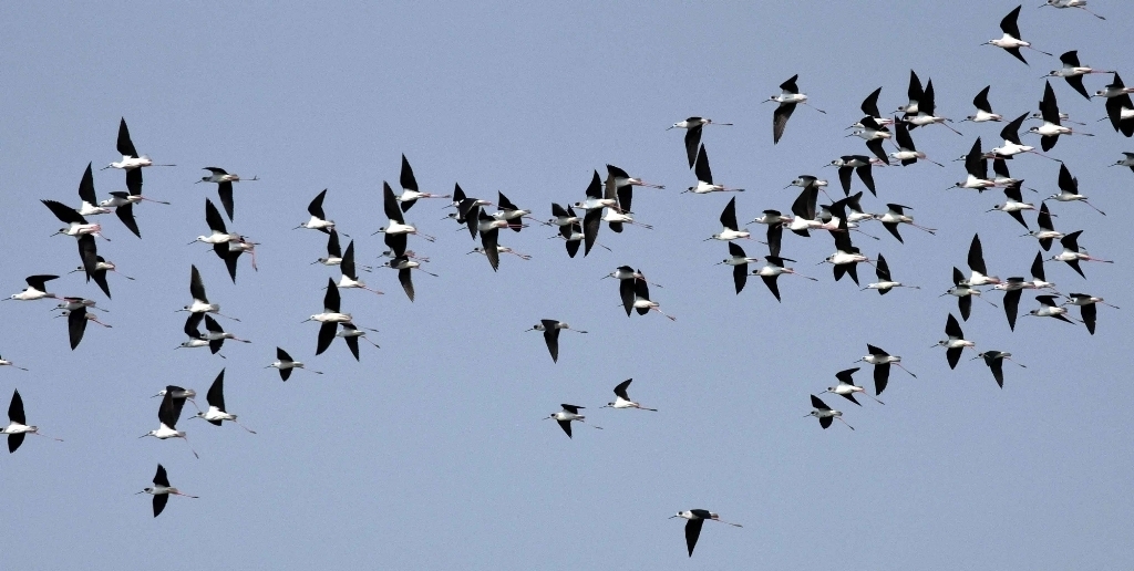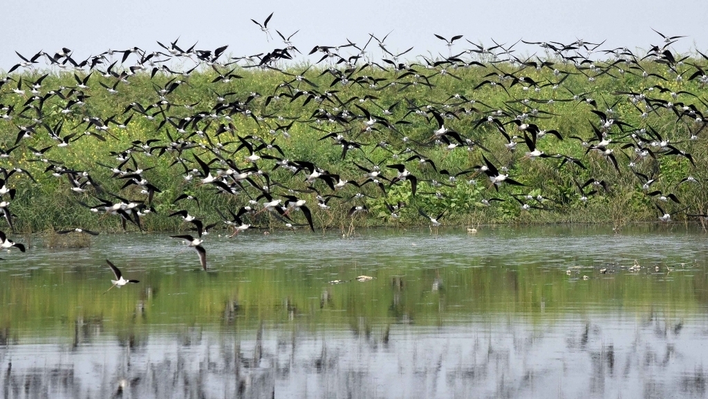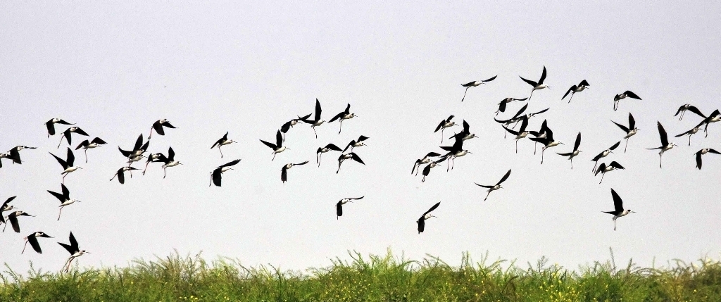 Patna: Migratory birds seen flying over the Ganga river in Patna, (Photo: IANS)...