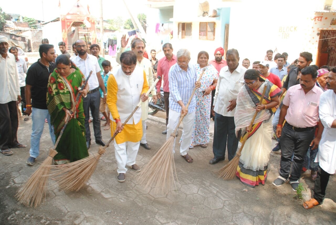 Bhopal mayor Alok sharma participating in clean drive at ward no. 49